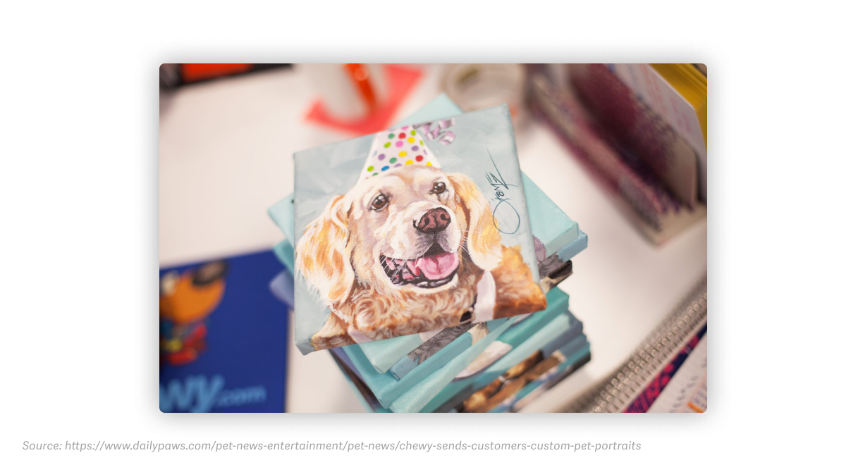 Chewy has generated headlines and viral word-of-mouth shares by going above and beyond for its customers, often surprising them with gifts for significant life events, sympathy flowers when they've lost their pets, and even customized pet portraits.