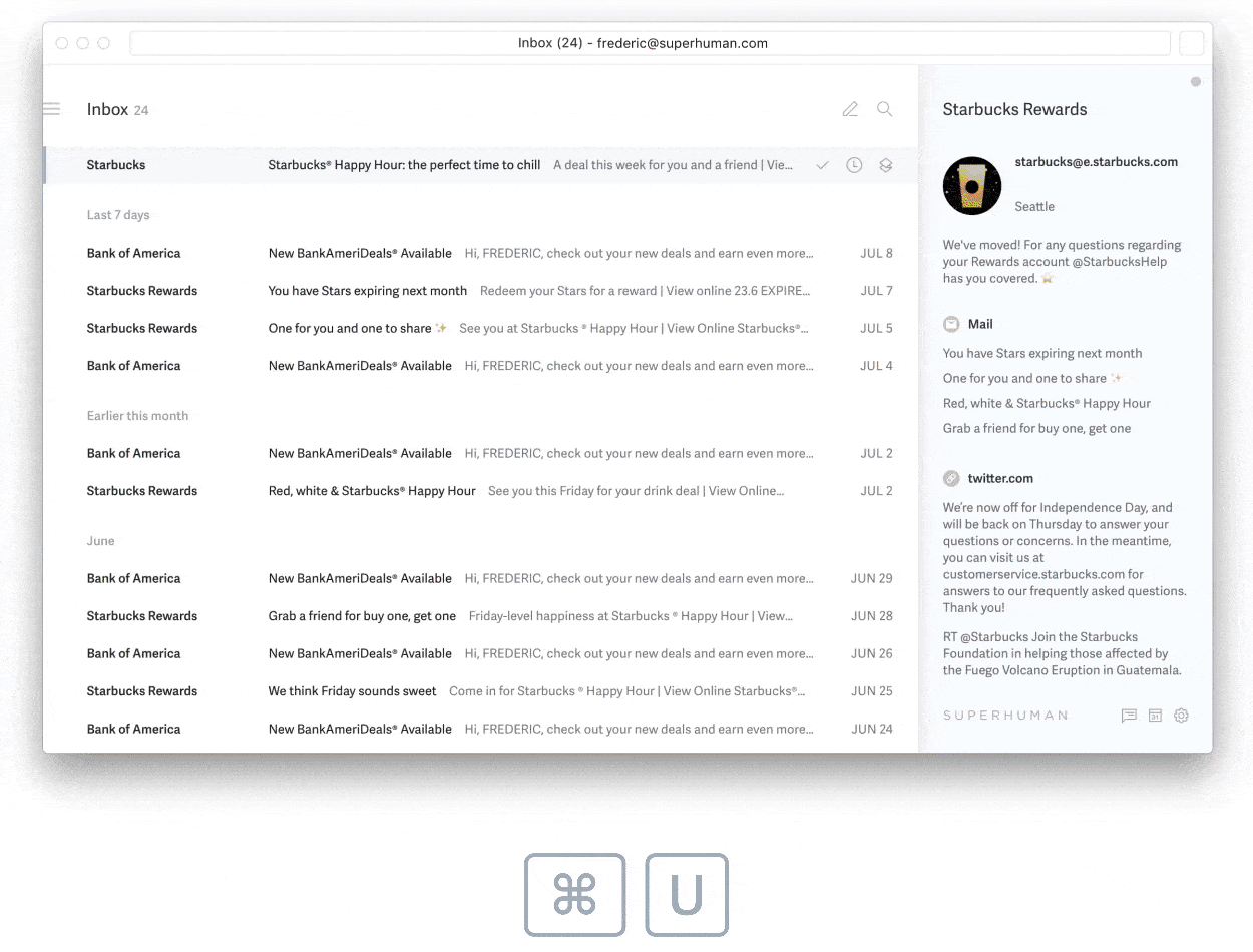 Superhuman works with your Gmail account while providing a dramatically improved experience through: