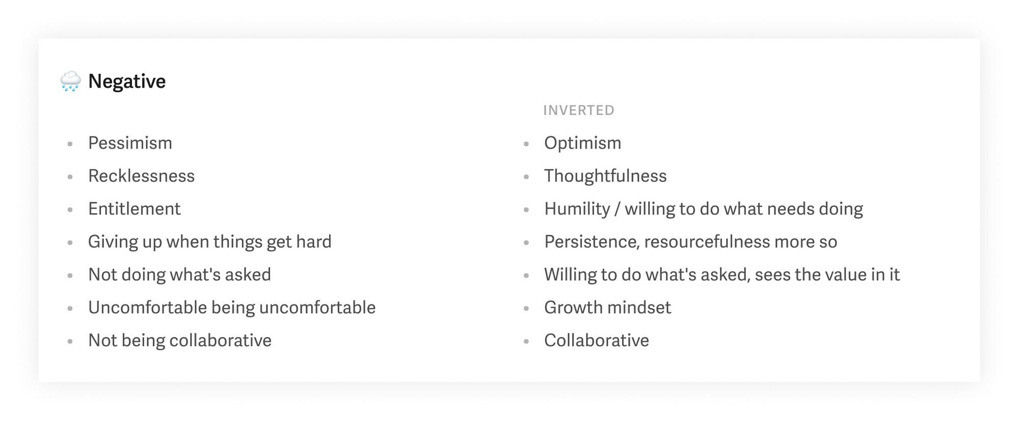Once you have some names, ask tough questions: what exactly made them difficult to work with? Identify problematic traits, and then list their opposites. Add these to your list of potential core values: