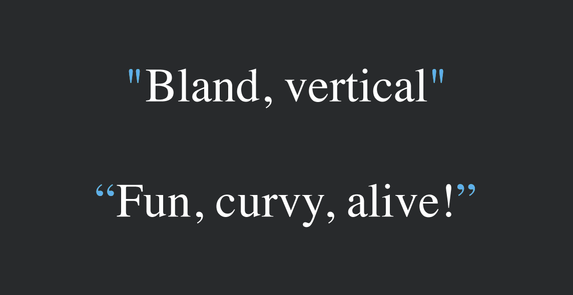 Instead of bland vertical quotes, we'd use fun, curvy quotes to make the text feel more alive: