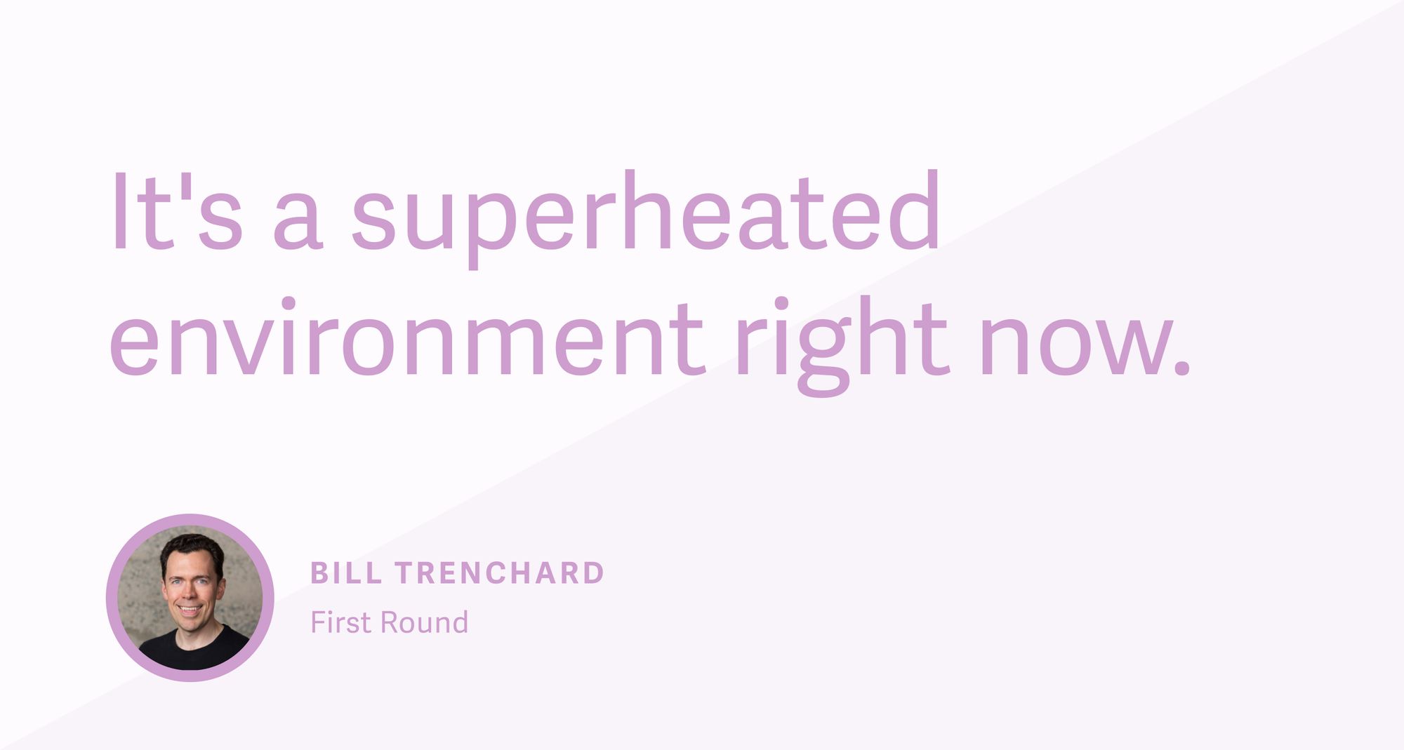 "It's almost like a superheated environment right now," says Bill Trenchard, general partner at First Round. "The speed with which partnerships can quickly meet with a company that's of interest is so much higher in the Zoom world. It's changing our thinking around velocity in the market, which was already very high."
