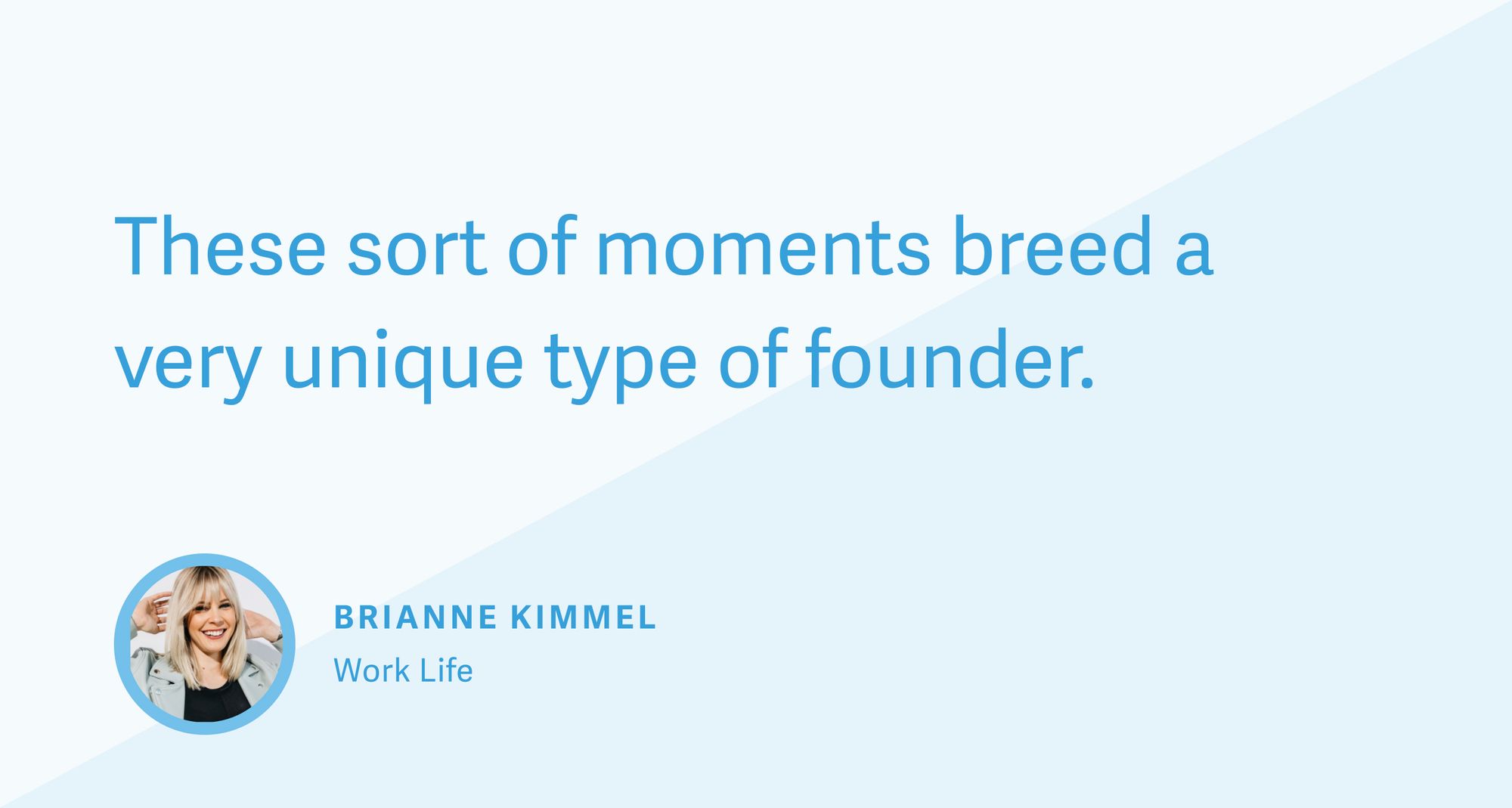 "These sort of moments actually breed a very unique type of founder," observes Brianne Kimmel of Work Life. "The companies that have historically performed well in recession actually start with a very strong opinion on design and a very strong point of view on community."