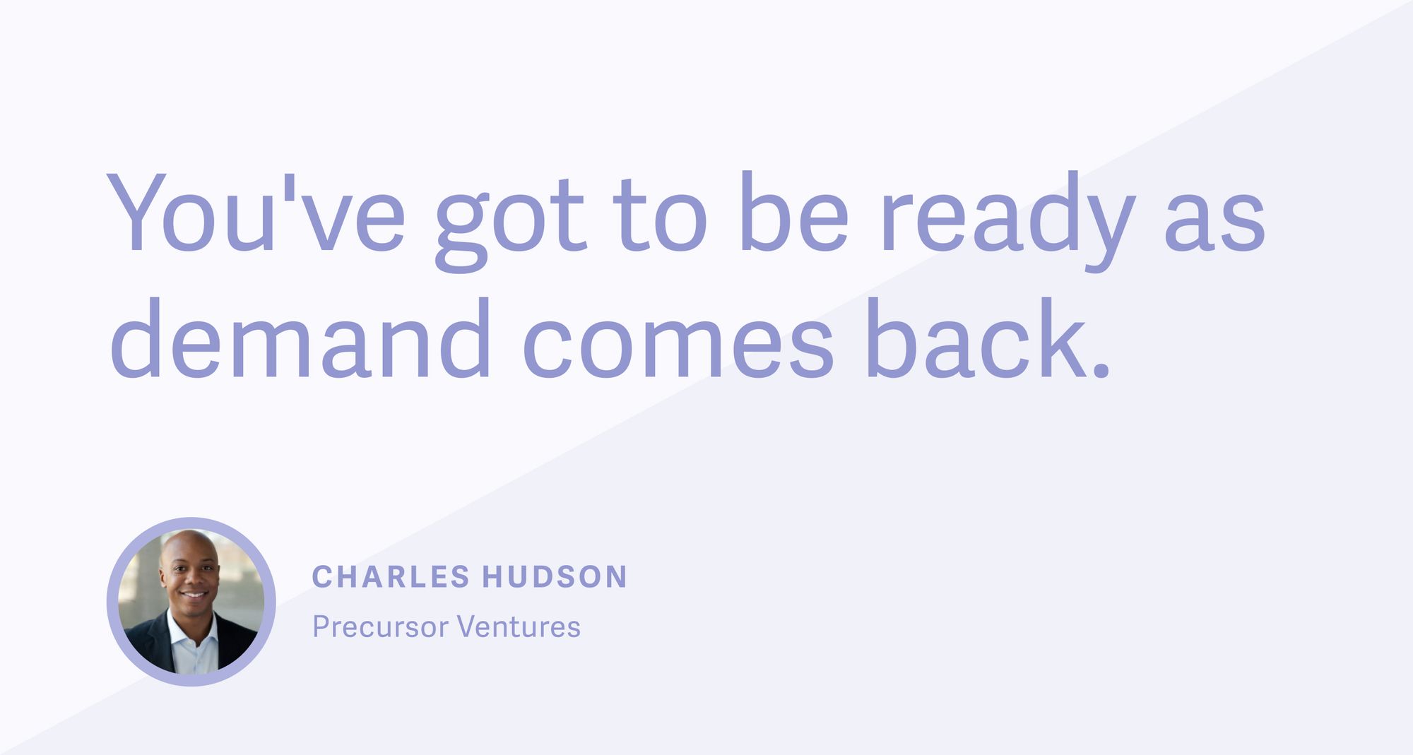 "You have to ask yourself: in 18 months are we going to be ready for our customers when they come back?" says Charles Hudson of Precursor. "And that can be building out product features that you know that you're going to need, shoring up internal processes, making sure that you're close enough to your market and your competitors and your customers."