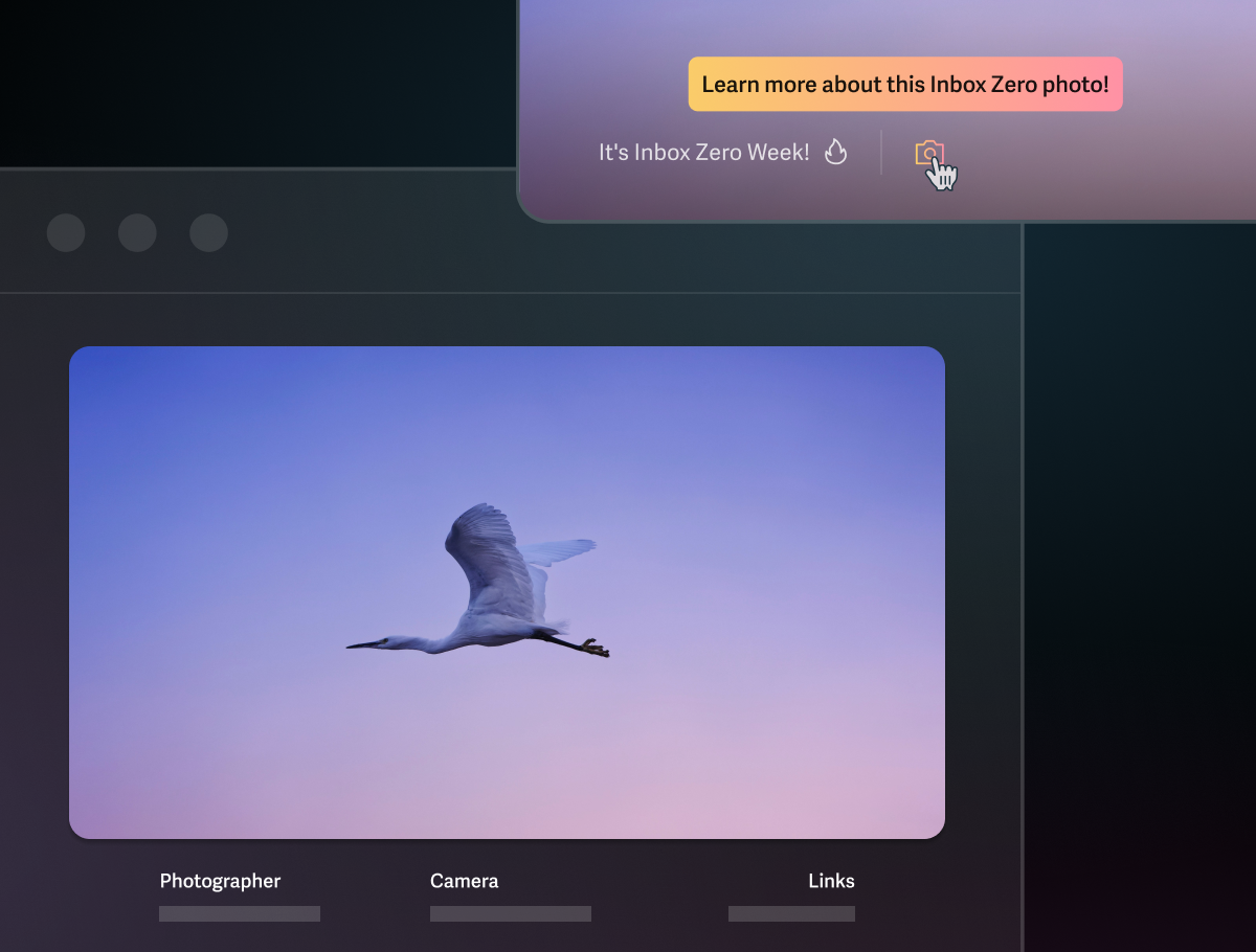 Ever wanted to learn more about an awe-inspiring Inbox Zero image? Now through the end of the month, you can quickly find details about any Inbox Zero image in Superhuman Mail, and share it with others.