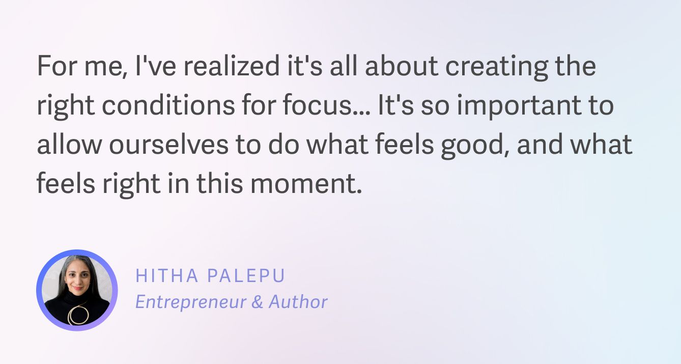 For Hitha, productivity is about stripping away the unnecessary, and following your intuition:
