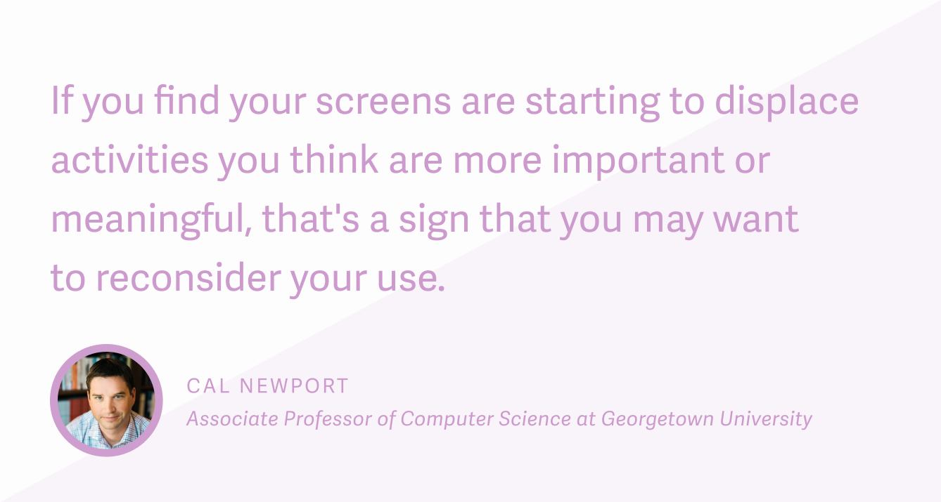 So here are some ideas for how you can develop a healthier relationship with the screens in your life. Sometimes that will involve spending less time looking at screens. Other times it will only affect the time, context, or type of screen time you're logging.
