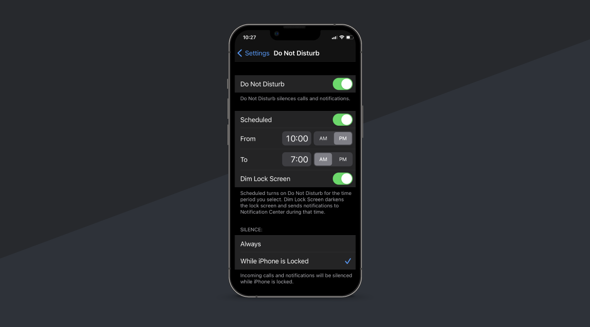 Many phones and other electronic devices have built-in do-not-disturb modes that limit (or eliminate, depending on your settings) notifications once they're toggled on. These can be helpful when you're spending time with friends and family, eating meals, or doing other activities where you'd like to avoid being distracted by or drawn to your screens.