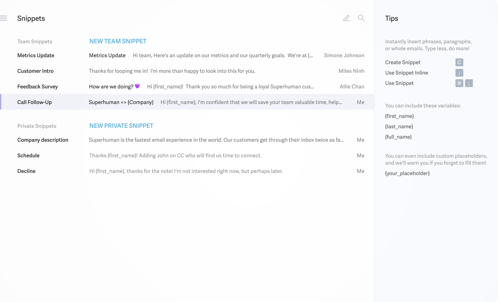 And with Team Snippets — one of our most requested features — you can now share these templates with your entire team.