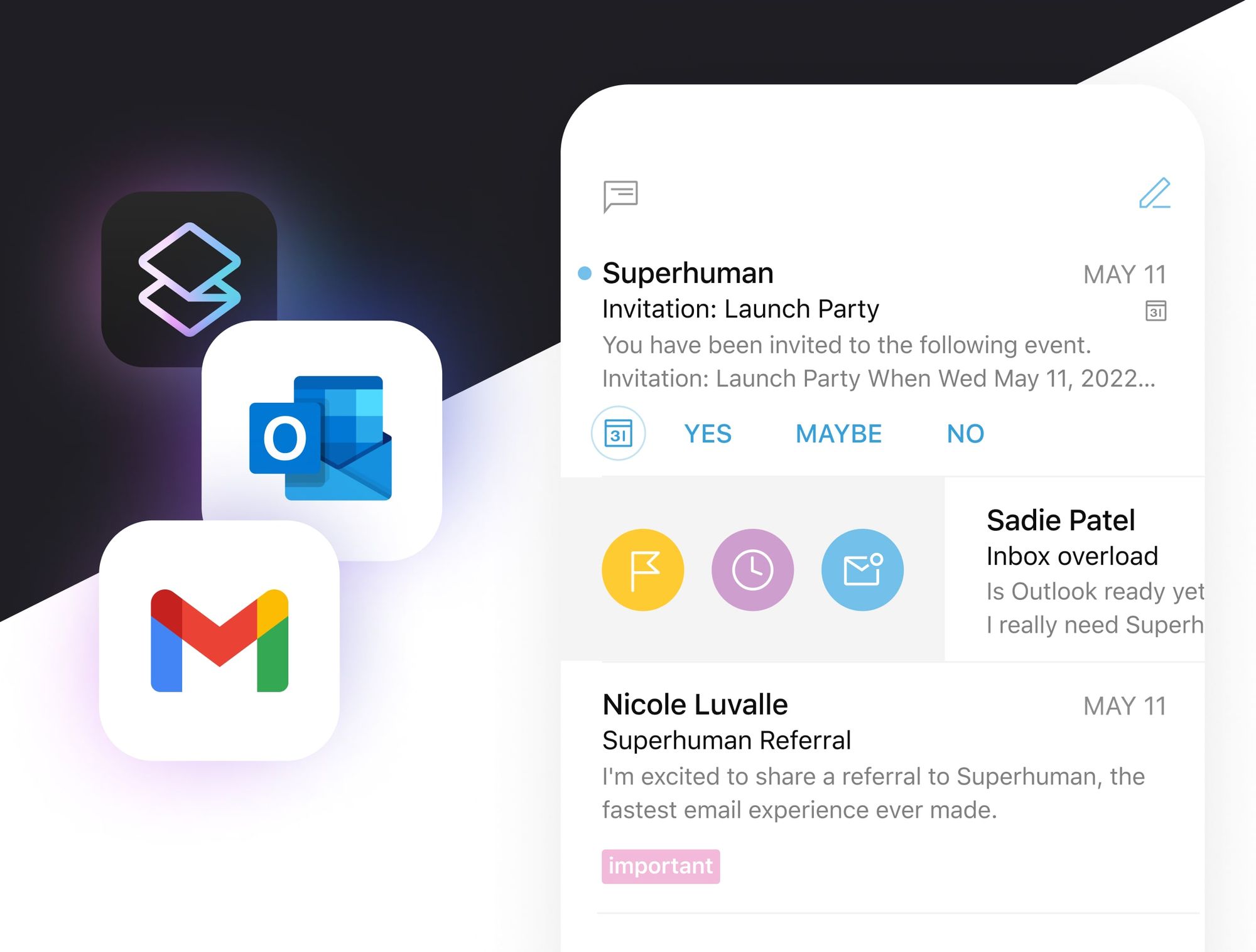 Whether you and your team use Gmail or Outlook, you can now use Superhuman to get through your inbox twice as fast as before, reply to important messages faster, and get three hours back every single week.
